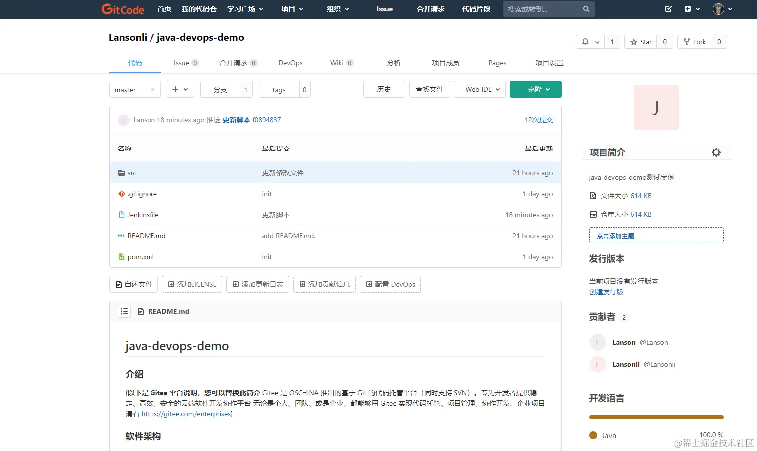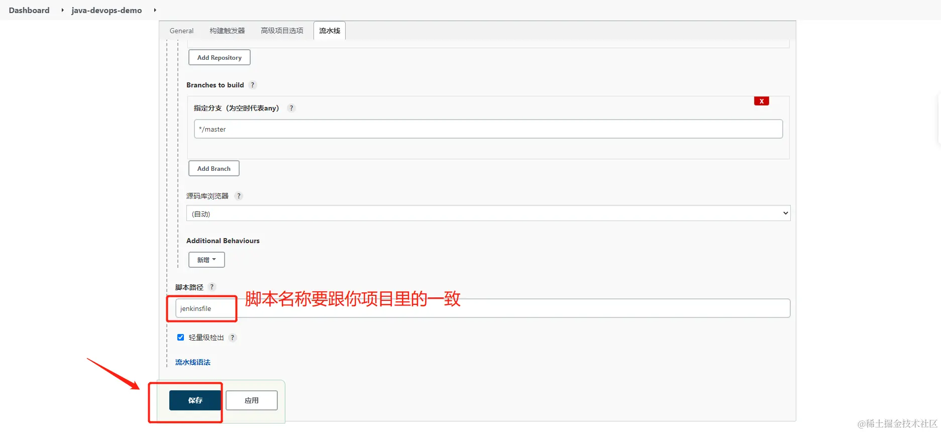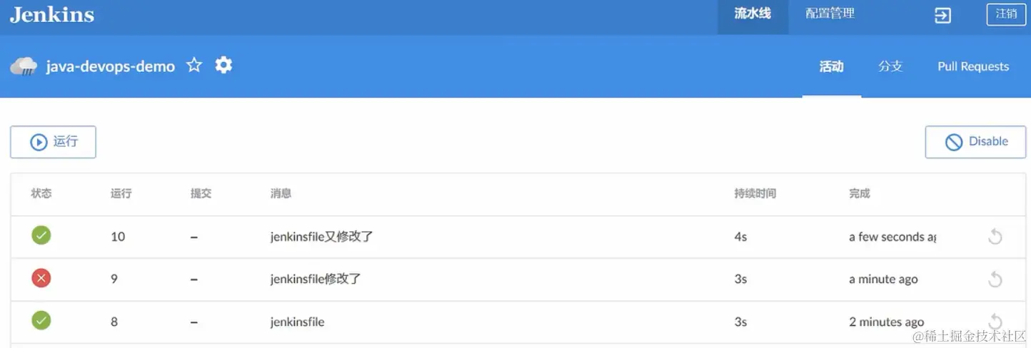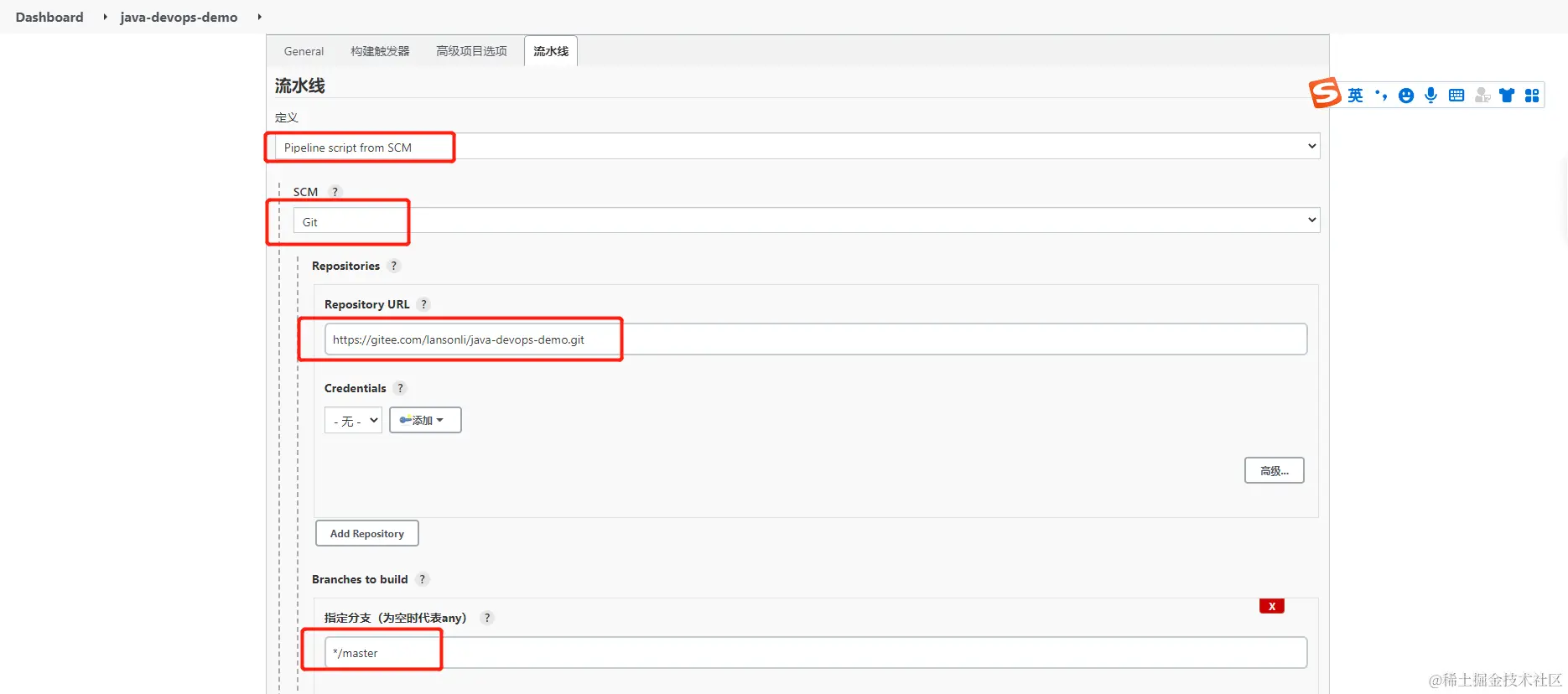 - 创建一个名为 devops-java-demo的流水线项目,使用项目自己的流水线