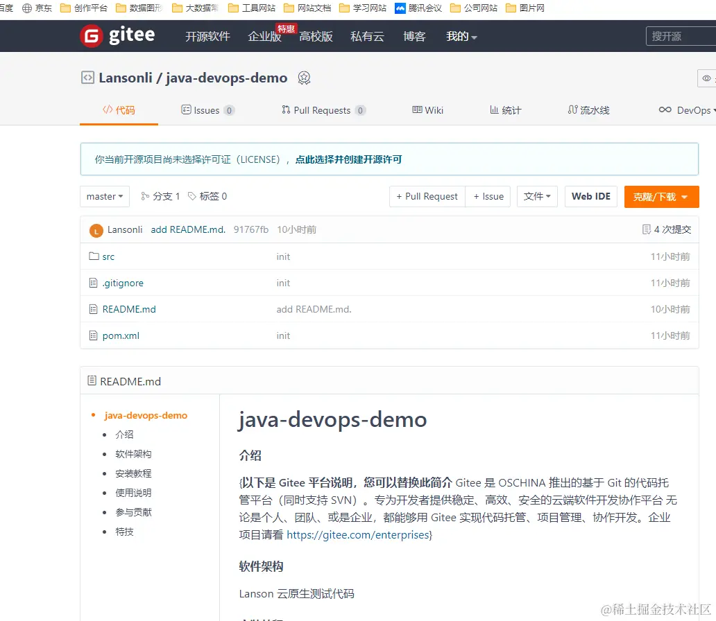 - gitee创建一个仓库,本地上传到仓库上