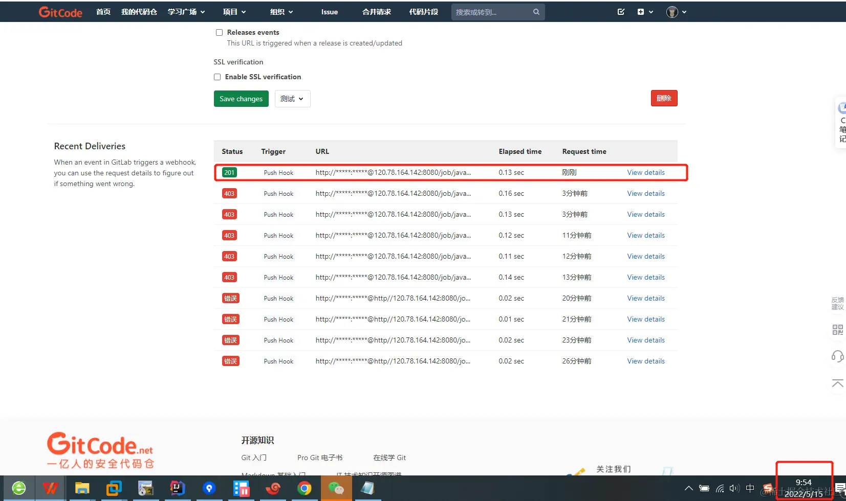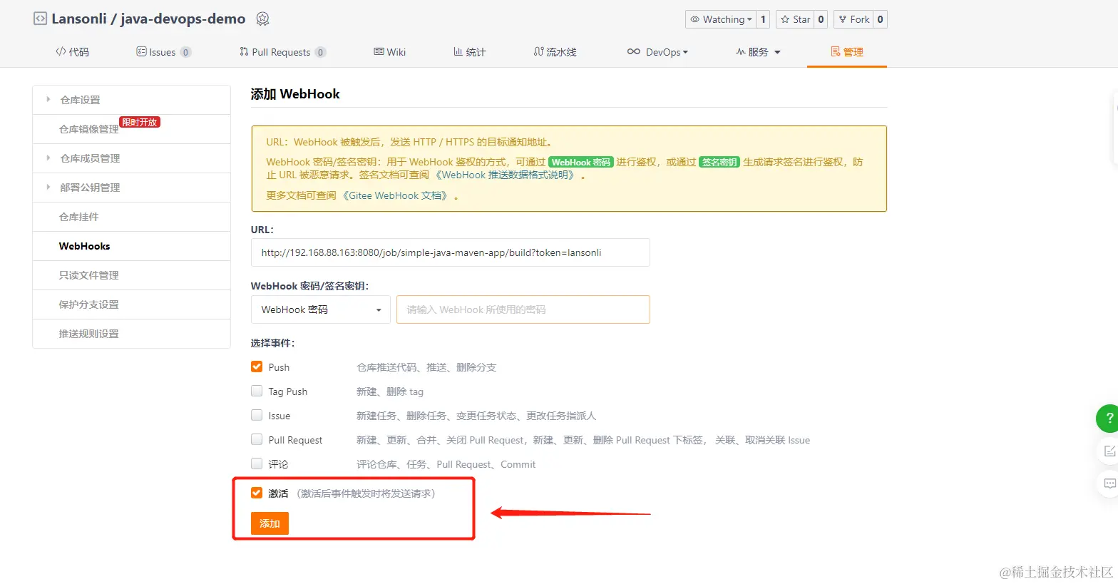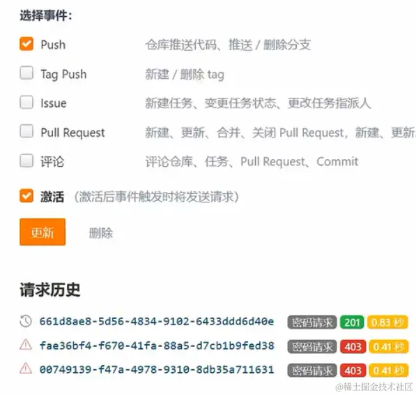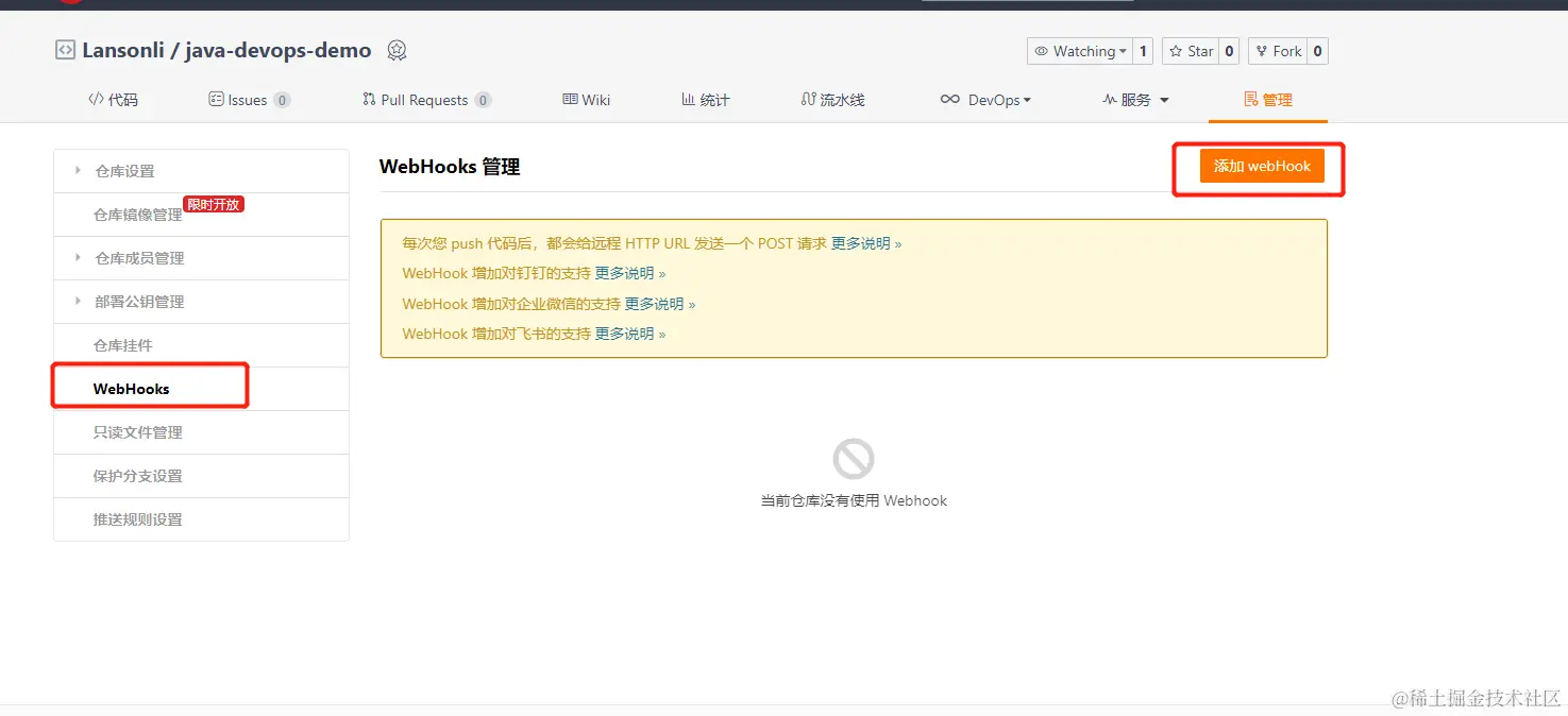 3、配置gitee/github,webhook进行触发