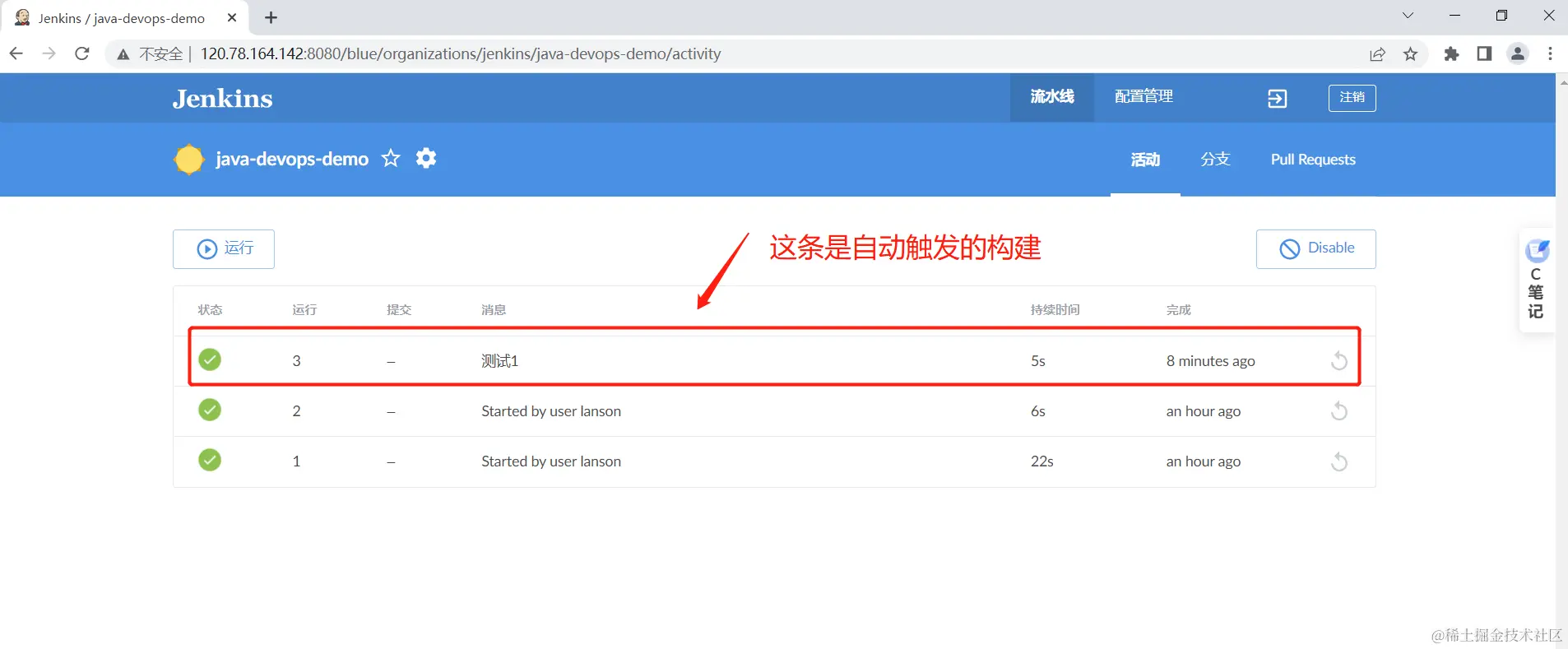 以后直接提交push代码就会触发自动构建,不用手动执行触发了