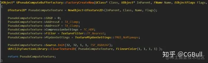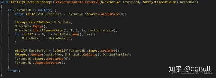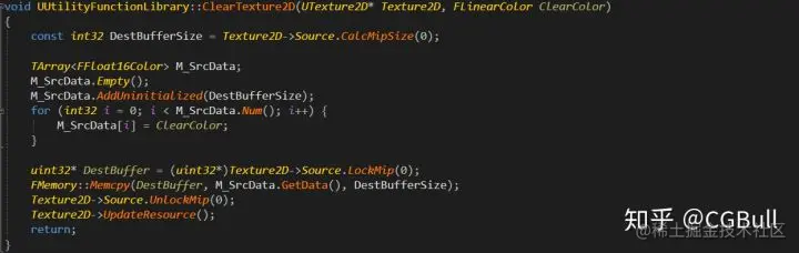 为了能够做到这一点我们得有 T2D 这个数据存储体,默认引擎创建 T2D 只能通过导入贴图来做。想想我们每加一个 Array 都要导一张贴图分辨率还不能动就很 GG,所以这里选择新建一个 CustomAsset 来做,即内容浏览器里面右键创建 Texture2D。首先得创建一个插件来管理我们的内容(如果不会,可以看 UE 官网的 Plugin 教学)。然后往我们自己的 Plugin 内添加一个继承自 BlueprintFunctionLibrary 的 UtilityFunctionLibrary,给它添加两个 Clear 和 SetData 的方法并且暴露给蓝图。第一个是做 ClearColor 使用的方法,第二个则是将我们的数据直接通过内存拷贝到 T2D ,以此来达到比之前蓝图 LoopDrawTexture 快 N 倍的速度。