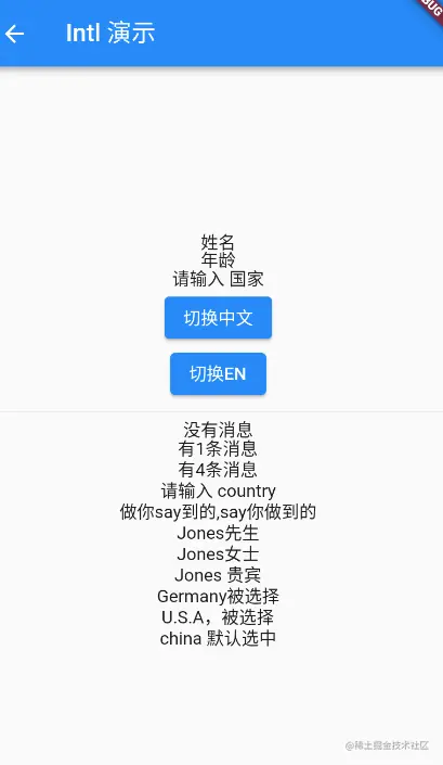 当我们配置arb文件后,Intl会在generated/I10n.dart文件中使用message方法生成get方法。比如刚才的姓名和年龄代码: