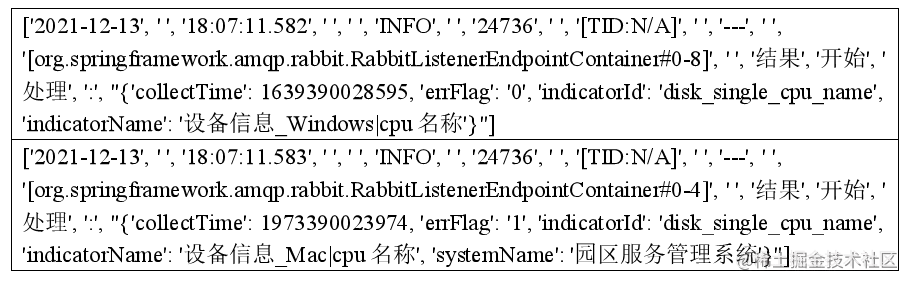 首先进行 json 的实体识别,将 json 作为一个整体识别出来。对于没有特定规则的,则采用 HMM 或 CRF 的方式进行序列标注,例如对与其中的[org.springframework.amqp.rabbit.RabbitListenerEndpointContainer#0-8],它首先会拆分为一个序列['[', 'org', '.' ,'springframework', '.', 'amqp' ,'.', 'org', '.' ,'rabbit', '.', 'RabbitListenerEndpointContainer' ,'#', '0', '-' , '8', ']',],通过序列标注模型识别的结果为[BMMMMMMMMMMMMMMME],因此它们为一个整体。对于上述的日志,最终的分词结果如下: