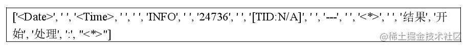 以上的两条分词后的日志最终会形成一个模式为: