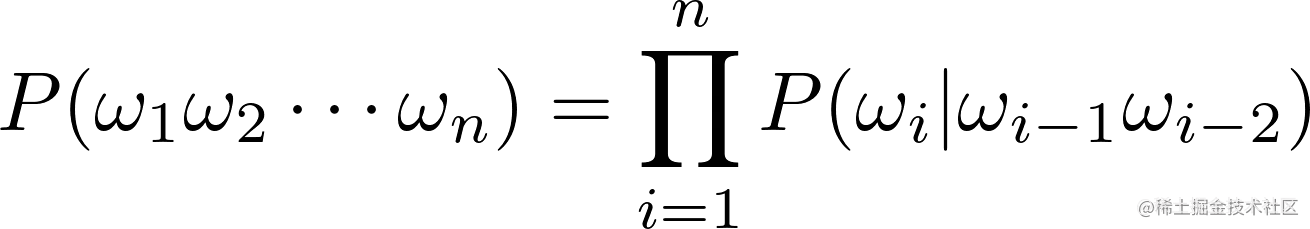 - 3-gram(trigram),三元模型,句子中的每个词依赖于前面两个词: