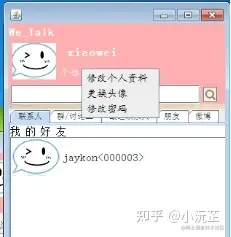 用户与其他用户进行交互方式如图17所示,是各位用户正在进行交互选择的页面,分为:信息传递,好友操作等等功能。
