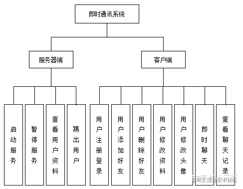 该即时通讯系统是有两部分组成,服务器端可以通过启动来监听客户端信息的传递与执行各种对客户端的监控,客户端则是通过人性化与美观的界面来使用户可以易上手和舒适的体验快速与简便的通讯[9]。