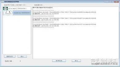 图9是控制端操作页面,通过运行相应的文件,即可打开该服务器端界面,在这个界面可以对已经注册过的用户进行管理与监控,也可以对服务器进行的基本管控,在对话框中查看一些基本日志。