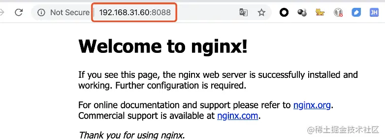 如果出现“Welcome to nginx!”就表示Nginx服务已经正常启动啦!