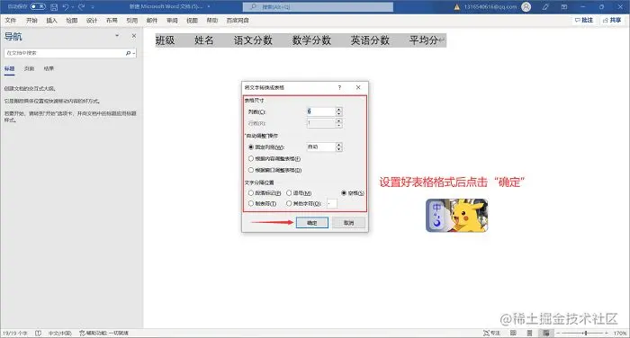 设置好转换的格式后点击“确定”,你的文字就成功包含在表格里面了!