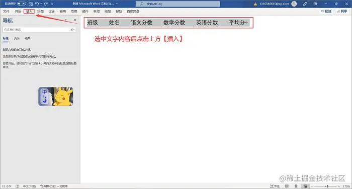 第1步:打开word文档后,选中你想要转换成表格形式的这部分文字内容,点击上方菜单栏中的“插入”功能;