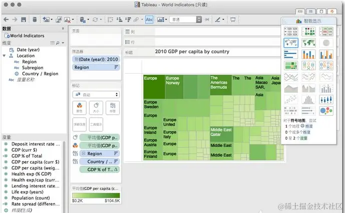 因为是商业智能,解决的问题更偏向商业分析,用 Tableau可以快速地做出动态交互图,并且图表和配色也非常拿得出手。