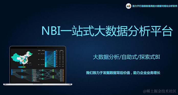 NBI一站式大数据分析平台作为新一代自助式、探索式分析工具,在产品设计理念上始终从用户的角度出发,一直围绕简单、易用,强调交互分析为目的的新型产品。我们将数据分析的各环节(数据准备、自服务数据建模、探索式分析、权限管控)融入到系统当中,让企业有序的、安全的管理数据和分析数据。更多信息请参考(nbi.easydatavis.com:8033)
