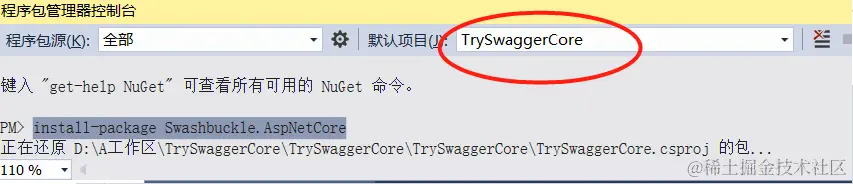 在WebApi项目中执行命令:Install-package Swashbuckle.AspNetCore