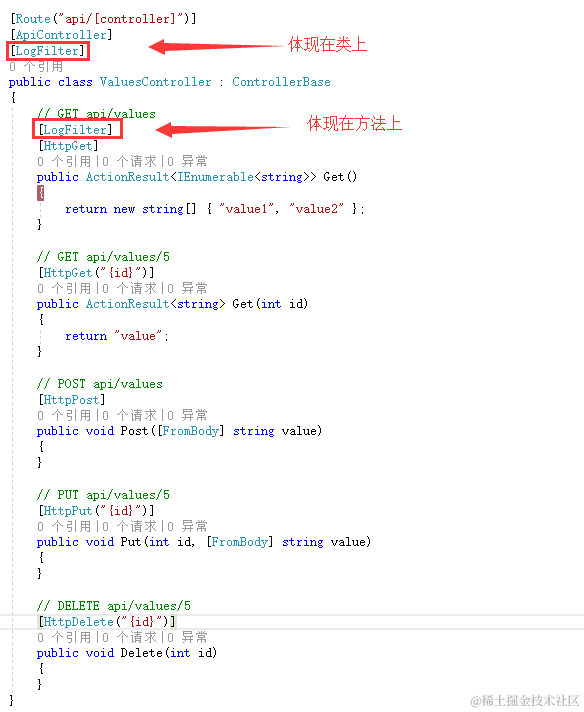 services.AddMvc(option => { option.Filters.Add(typeof(LogFilter)); }); //全局注册过滤器