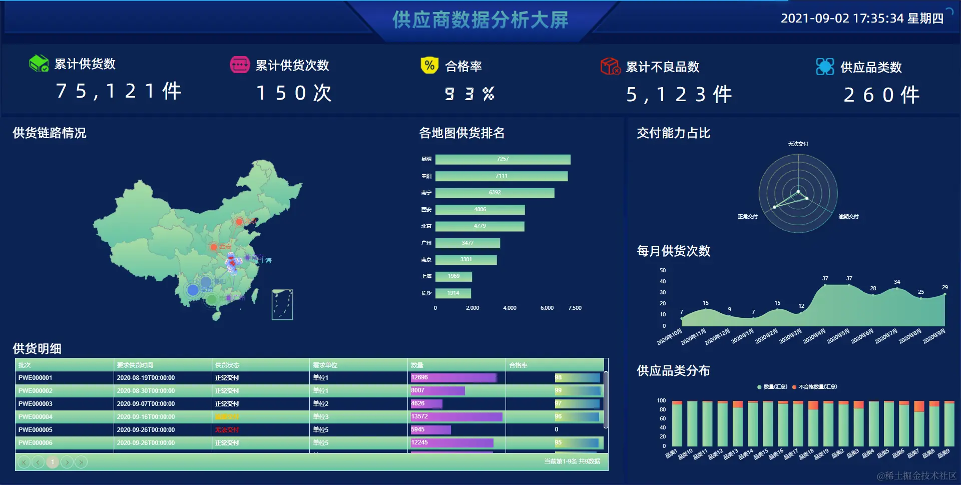 (3)丰富的展示组件:(NBI可视化平台中有多大50余种可视化组件)