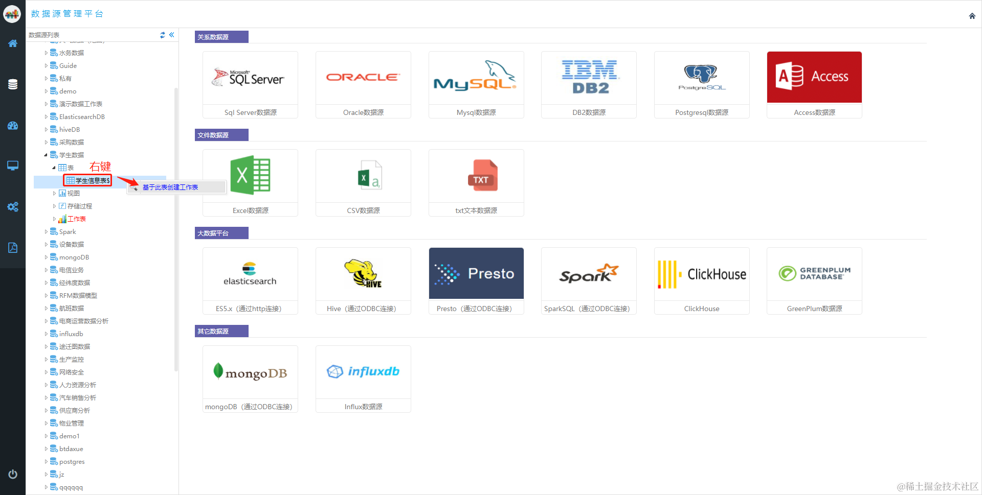 1.接着上篇文章,在创建的数据源节点名称上右键,选择“基于(基于 SQL 语句创建工作表)”: