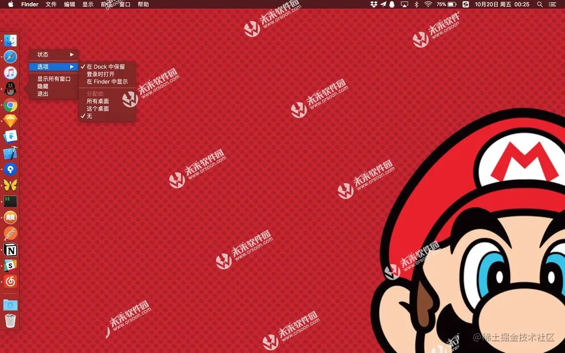 当你想要切换不同的桌面时,可以在 Mission Control 中点击最上方的桌面进行切换,也可以通过「触控板三指左右滑动」来切换。在 Dock 栏中,「右键点击应用」,可以在选项中,设置某个应用只在哪一个桌面打开。