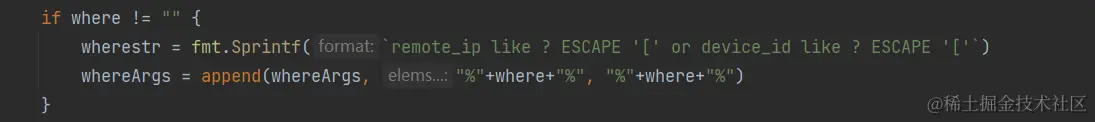 针对此问题我们进行了排查。通过调试发现,查询数据库时where条件里有两个空的like查询语句。当搜索条件不为空时,like查询语句不为空可以查询到数据,mysql数据库就不会报错。