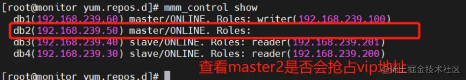停止 master2的 mysql 服务,确认 VIP 是否移动到 master02 上