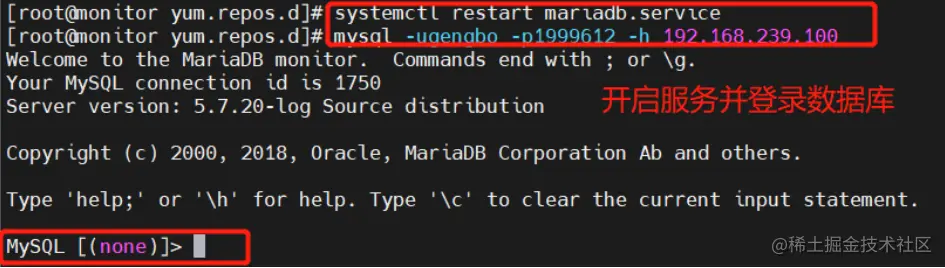 mysql -ugengbo -p1999612 -h 192.168.239.100 #能登录则成功