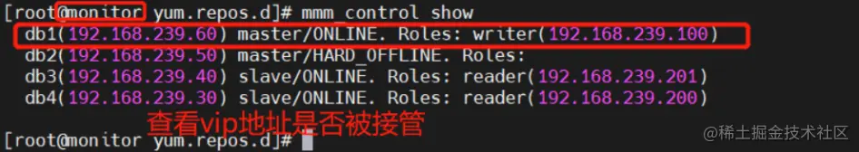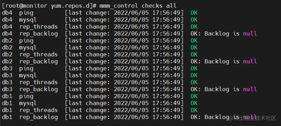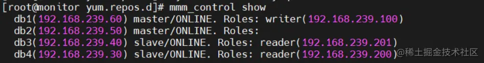 在 monitor 服务器上启动 mysql-mmm-monitor