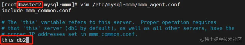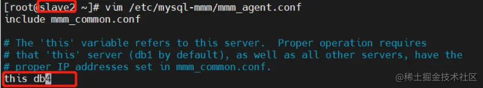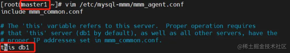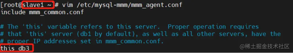 修改所有数据库服务器的代理配置文件 mmm_agent.conf