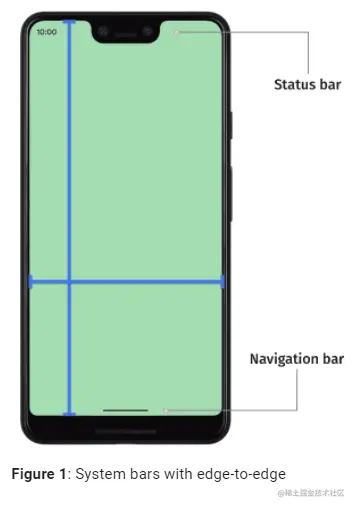 你的应用程序通过在这些系统栏后面绘图来实现一个边缘到边缘的布局。