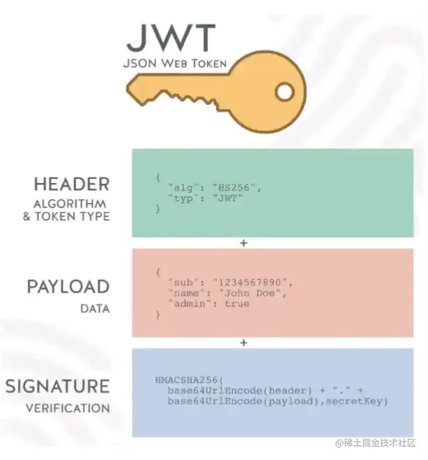 secretKey,通过将前两个的结合合并后进行HMACSHA256的算法 HMACSHA256(base64Url(header) + . + base64Url(payload), secretKey)- 但是如果