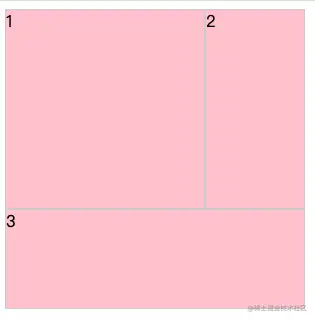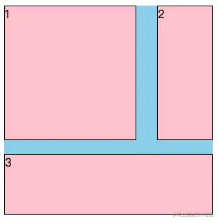 此时grid子项是没有占满grid容器的,如果希望第一个子项所占区域为2行2列,第二个子项所占区域为两行,第三个子项占满第三行如何进行设置呢?