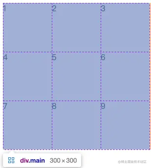 当打开调试工具将鼠标移入可以发现此时grid容器中有3行3列的单元格: