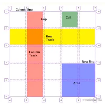 - Grid Line:构成网络结构的分割线,它们可以是垂直的(“列网格线”:Column Line)或水平的(“行网格线”:Row Line)