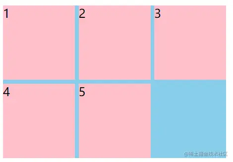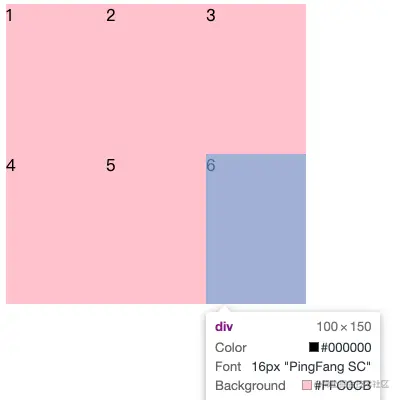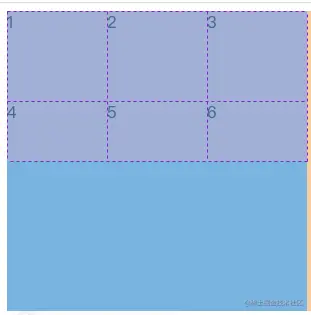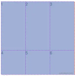 - 以上可以看作将grid容器按照比例分为2行3列,那么每一个单元格的宽度为300 / 3 = 100px , 每一个单元格的高度为 300 / 2 = 150px