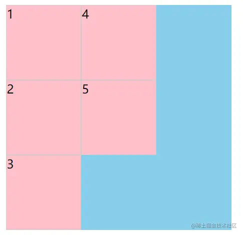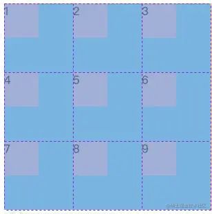 - 可见,此时网格将默认位于grid容器的左上方