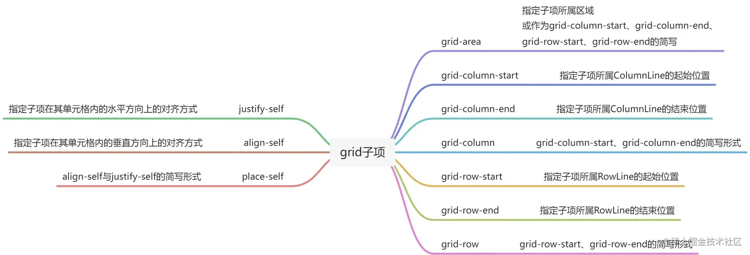 - Grid Item:grid container的直接子项(注意必须是直接子代,孙子级及其他级别子代不算)
