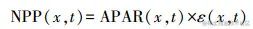 地理遥感生态网平台提供的NPP数据基于CASA模型估算,其计算植被NPP的基本思想是利用植被获取太阳辐射, 加上植被自身利用的情况, 从而估算出植被净生长状况。模型中所估算的NPP可以由植被吸收的光合有效辐射(APAR)和实际光能利用率(ε)两个因子来表示, 公式如下: