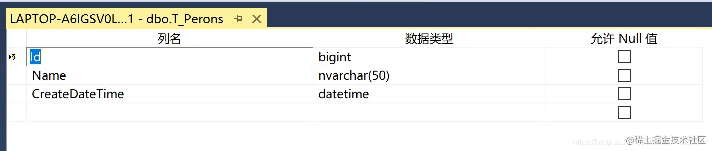 1)、数据库中建表T_Perons,有Id(主键,自动增长)、Name、CreateDateTime字段。