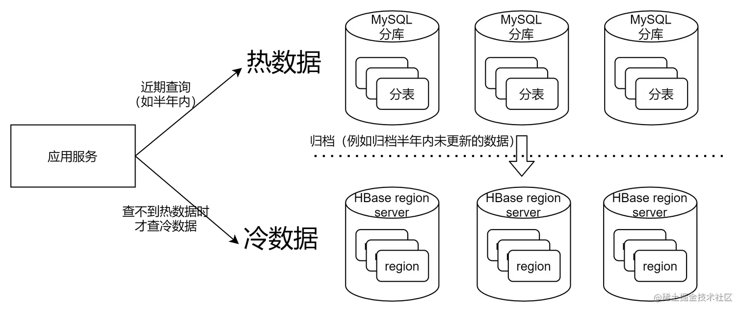 - 归档近期未更新的历史数据,新增数据至HBase,再删除MySQL记录
