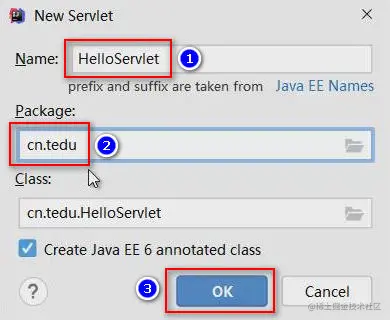在弹出的New Servlet对话框中,自行填写Servlet Name与Package,完成后点击OK即可: