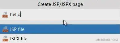 在弹出的Create JSP/JSPX page对话框中输入文件名(不需要输入扩展名)并回车: