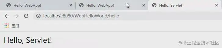 完成后,再次重新启动项目,在URL的Context Path值的右侧添加hello(Servlet组件配置的urlPatterns值)即可看到Servlet转发的JSP文件显示的内容:
