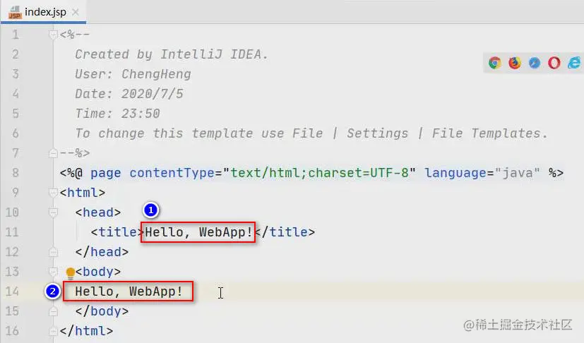 打开index.jsp文件,该文件目前只有最基础的文件结构: