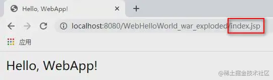 由于index.jsp是默认页面,所以,在浏览器的URL中并不需要显式的添加该文件的名称,如果添加了,显示的效果也是完全相同的: