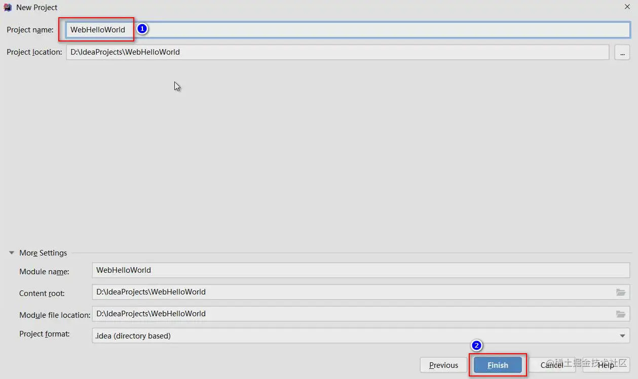填写项目名称,并确保保存项目的文件夹路径无误后,即可点击Finish按钮,以完成创建项目: