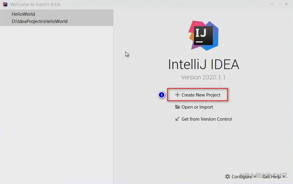 在IntelliJ IDEA的欢迎主界面中,点击Create New Project: