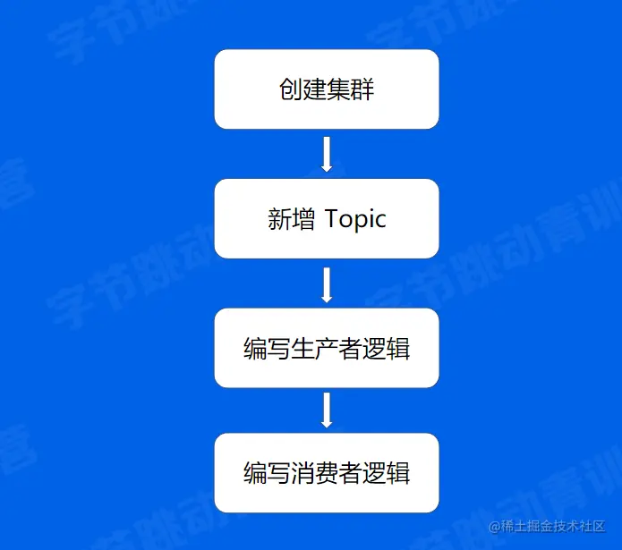 - 引入对应语言的SDK,配置好集群和Topic等参数,初始化一个生产者,调用Send方法,将你的Hello World发送出去。