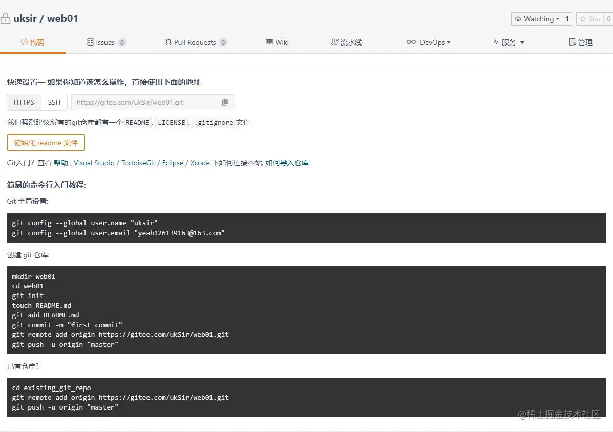 git origingit remote add origin https://gitee.com/ukSir/web01.git