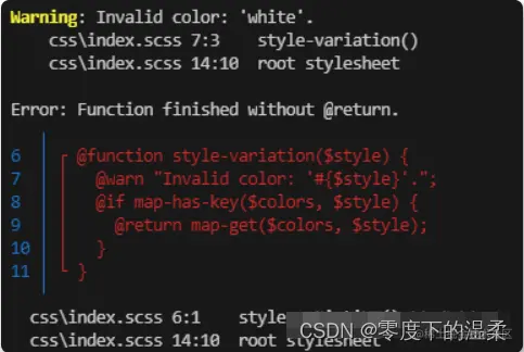 如果你使用的VSCode的Live Sass Compiler插件,可以参考我的配置,这个插件用的 Sass版本是LibSass3.5.4,对有些指令存在兼容性和不支持的情况。