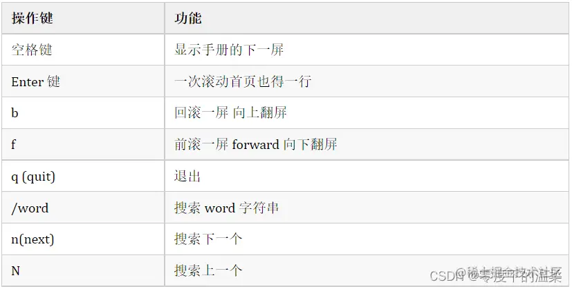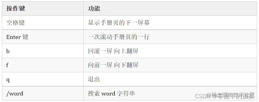 使用 man 时的操作键: