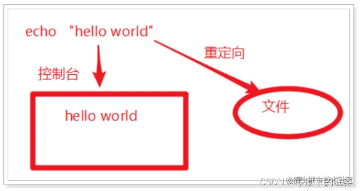 - echo string 将字符串输出到控制台 , 通常会和 重定向 联合使用